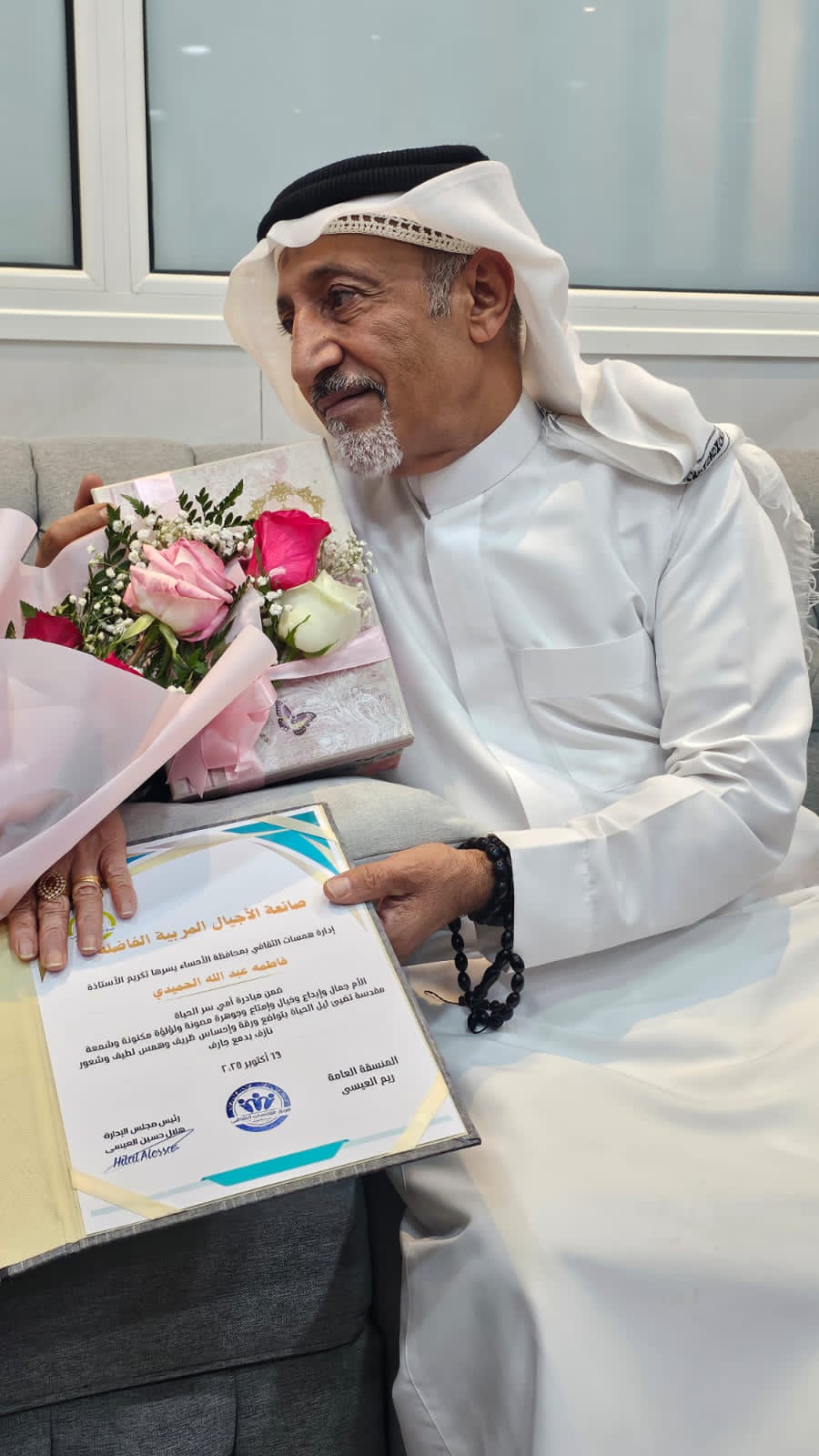 كذلك التقينا بالمشرف العام هلال العيسى والذي قال مبادرة أمي سر الحياة مستمرة لتكريم 30 سيدة لهن الدور الفعال الحقيقي في صناعة الأجيال ‘ ومن جانب آخر قال الفريق شارك باليوم اليوم العالمي لكبار السن ضمن مبادرة جمعية رحماء لرعاية المسنين وبحضور وكيل محافظ الأحساء الأستاذ معاذ الجعفري بركن تعريفي لأبرز البرامج المنفذة خلال عام 2025م والتي تتجاوز 60 فعالية ونشاط وأكثر من 75 الف ساعة تطوعية معتمدة ” والفريق الفترة القادمة بصدد تنفيذ برنامج لزيارة مركز إثراء الظهران للمعرفه والتعرف على الخدمات المقدمه وتم كذلك زيارة معرض الكتاب الدولي بالرياض بمشاركة أكثر من 300 متطوع ومتطوعة من أعضاء الفريق