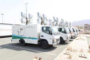 كما شملت الجولة الوقوف على استعدادات إدارة تشغيل وصيانة الإنارة، حيث تم استعراض معدات الإنارة المتنقلة (الصواري، والمولدات الاحتياطية والتي يتم استخدامها في حالات الطوارئ، كما يتم دعم ومساندة بعض الجهات الحكومية الأخرى بها،