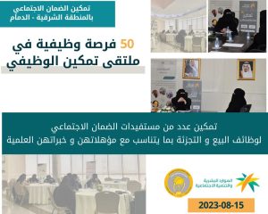 50 فرصة وظيفية للباحثين والباحثات عن عمل ” تمكين ضمان الدمام “