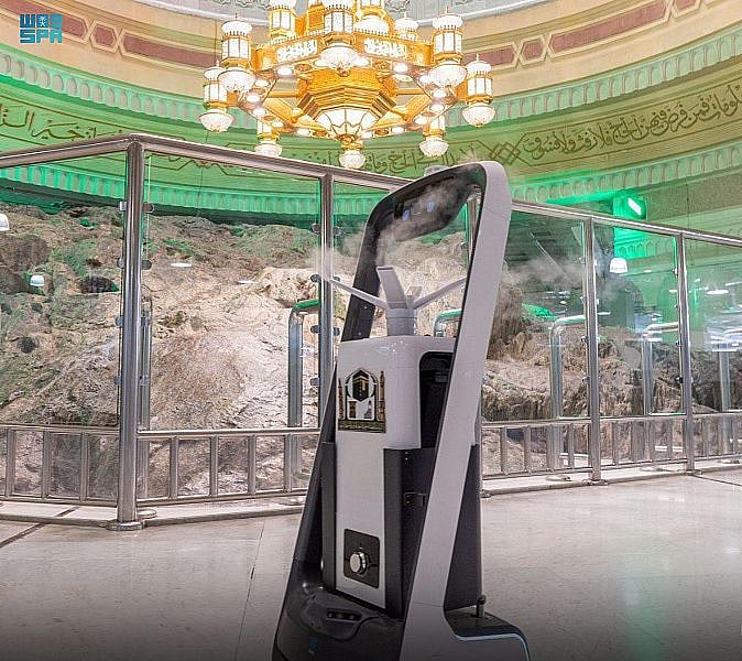 يُذكر أن جهاز “الروبوت” الذكي حصل على شهادات عالمية؛ ومنها شهادة اعتماد الجودة الأوروبية CE، ويأتي نظام التعقيم الآلي لحماية المعتمرين والمصلين من الفيروسات والقضاء على الأوبئة كافَّة.