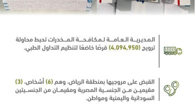 قضية جديدة للمكافحة (أقراص خاضعة لتنظيم التداول الطبي). “مكافحة المخدرات” تحبط محاولة ترويج أكثر من (4) ملايين قرص خاضع لتنظيم التداول الطبي