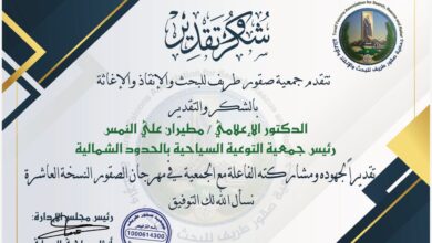 جمعية صقور طريف تُقدم الشكر للدكتور مطيران النمس لمشاركتة بمهرجان الصقور