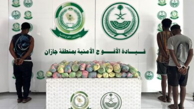 دوريات الأفواج الأمنية بمنطقة جازان تقبض على3 مخالفين لنظام أمن الحدود لتهريبهم21كلجم من القات المخدر